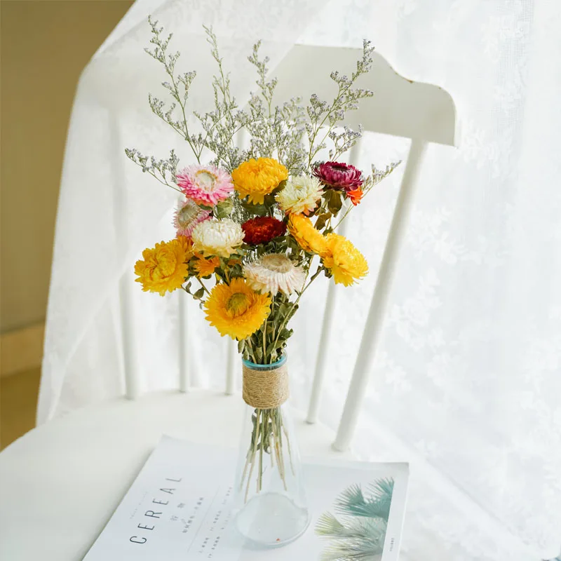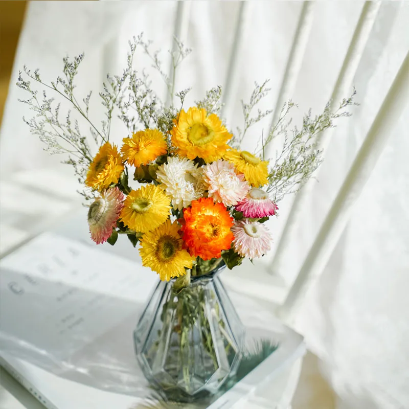 30 Heads Gold Orange Pink Natural Dried Flower Daisy Wedding Flower Bouquet Dry Flower Preserved Flower Home Decoration Table